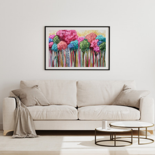 Inspired by my love of beautiful, vibrant colors. Each painting is filled with an inspirational message, encouraging each of us to 'Look For the Gold' and live a life full of meaning and purpose. The vibrant colors pulse with energy, creating an atmosphere of positivity and motivation.