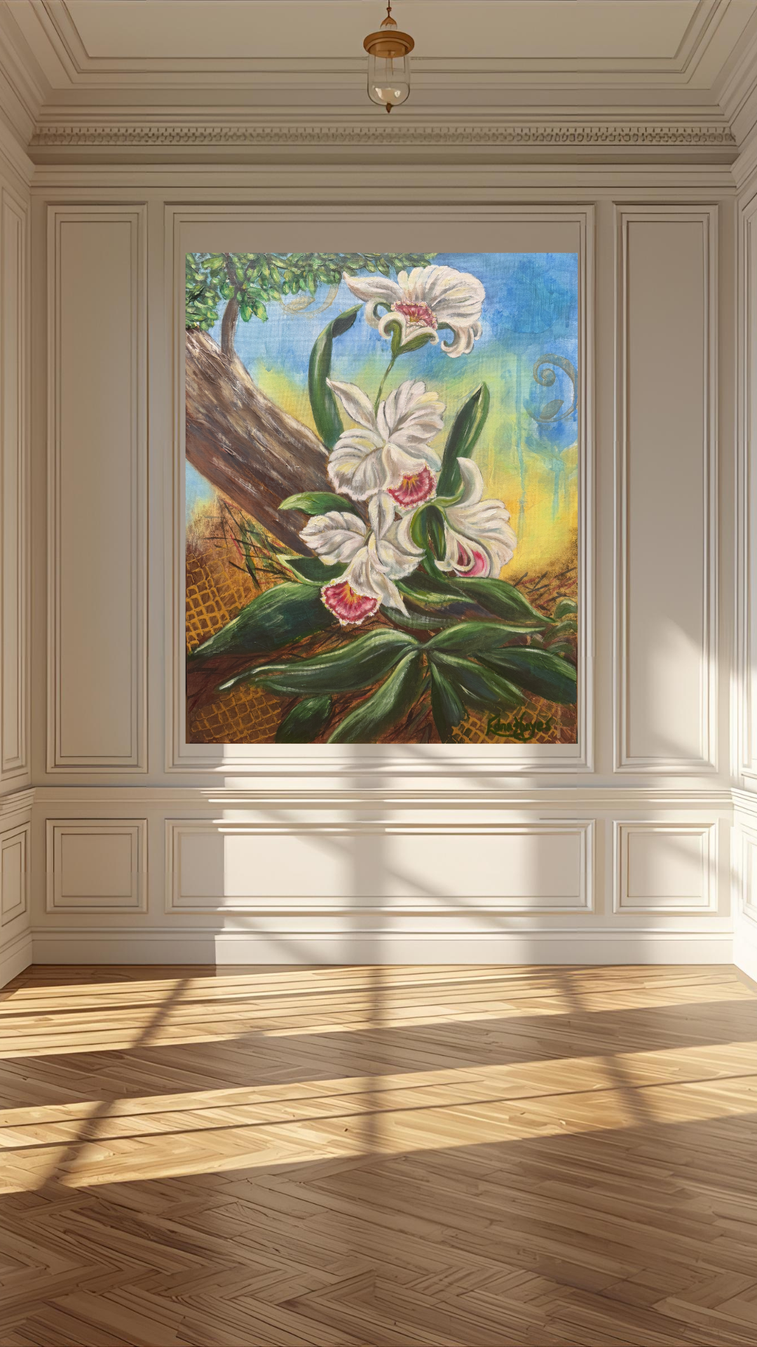 "Ascent Of Grace" invites you to a world of hope and continual growth. This painting is a powerful example for our own lives, depicting flowers that courageously emerge from the chaos below to find grace, clarity and light above. The dynamic composition and uplifting colors serve as a daily reminder that growth is a process of reaching, stretching, and trusting that you can indeed find grace to flourish and rise above any circumstance.