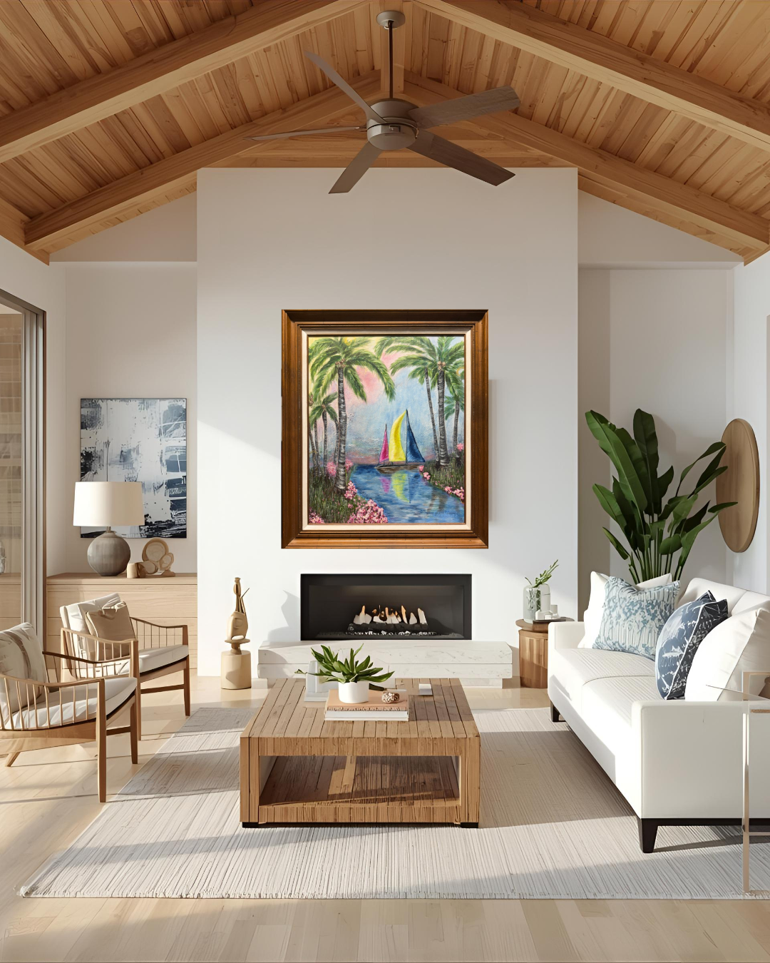 Available as an original only.... "Come Sail Away" invites you to embark on a personal voyage beyond the horizon. This colorful depiction of a sailboat symbolizes freedom, hope, and the pursuit of a higher purpose. Perfect for those seeking inspiration to navigate life's currents with faith and courage.