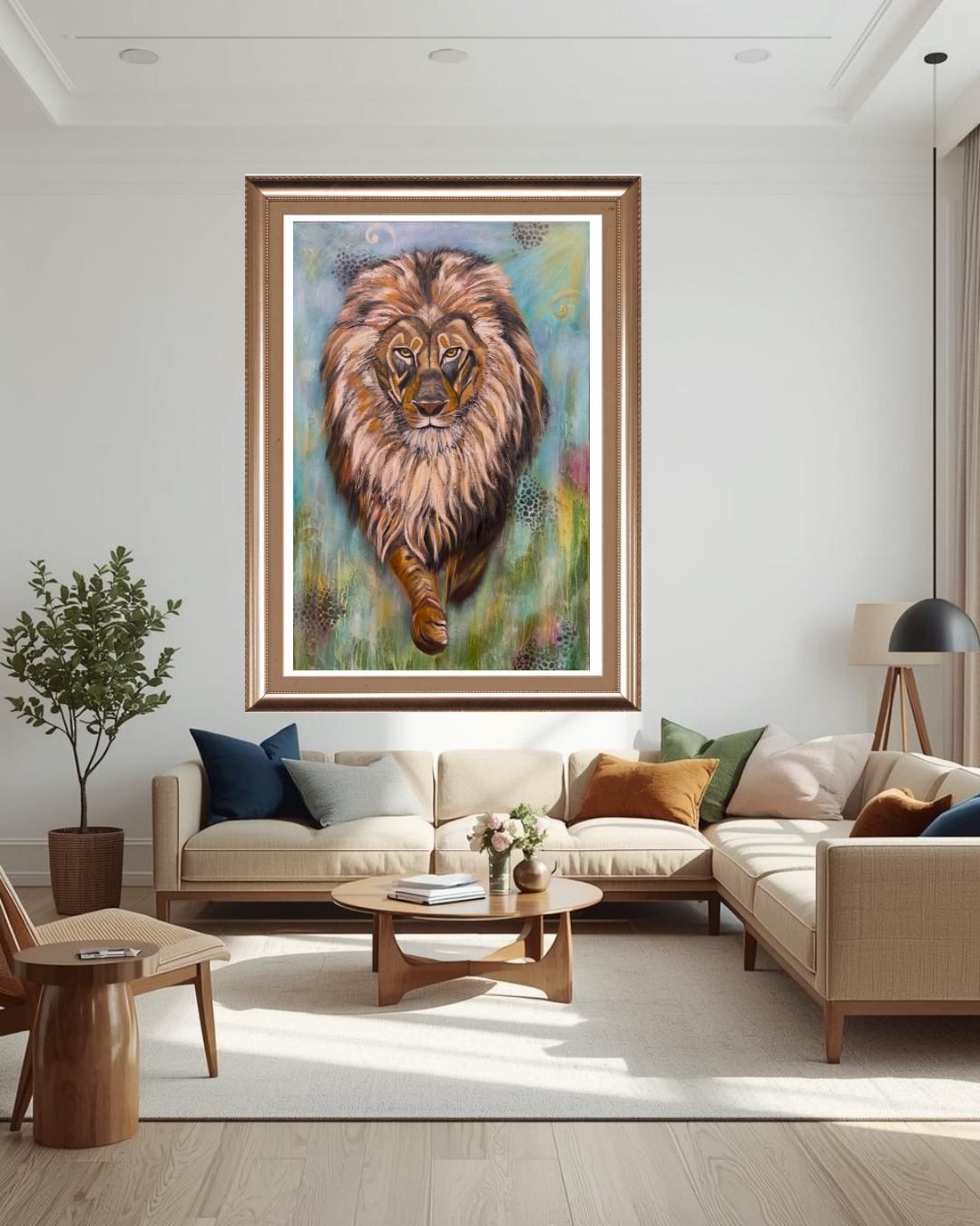 "Focused" is a visual reminder of the strength found when we keep our focus on our creator, the light that guides our every step. Just as a lion is intent, never wavering as he fixes his gaze on his goal, we are called to keep our eyes locked on our Creator. This painting captures that unwavering intensity, serving as a reminder that when we are centered on the Light, we are capable of accomplishing the impossible. It is only when we allow the distractions of the world to pull our gaze away that we begin to lose our path. Let this majestic lion remind you to silence the noise, steady your heart, and "Look for the Gold" .... keep your eyes fixed on the One who leads the way.