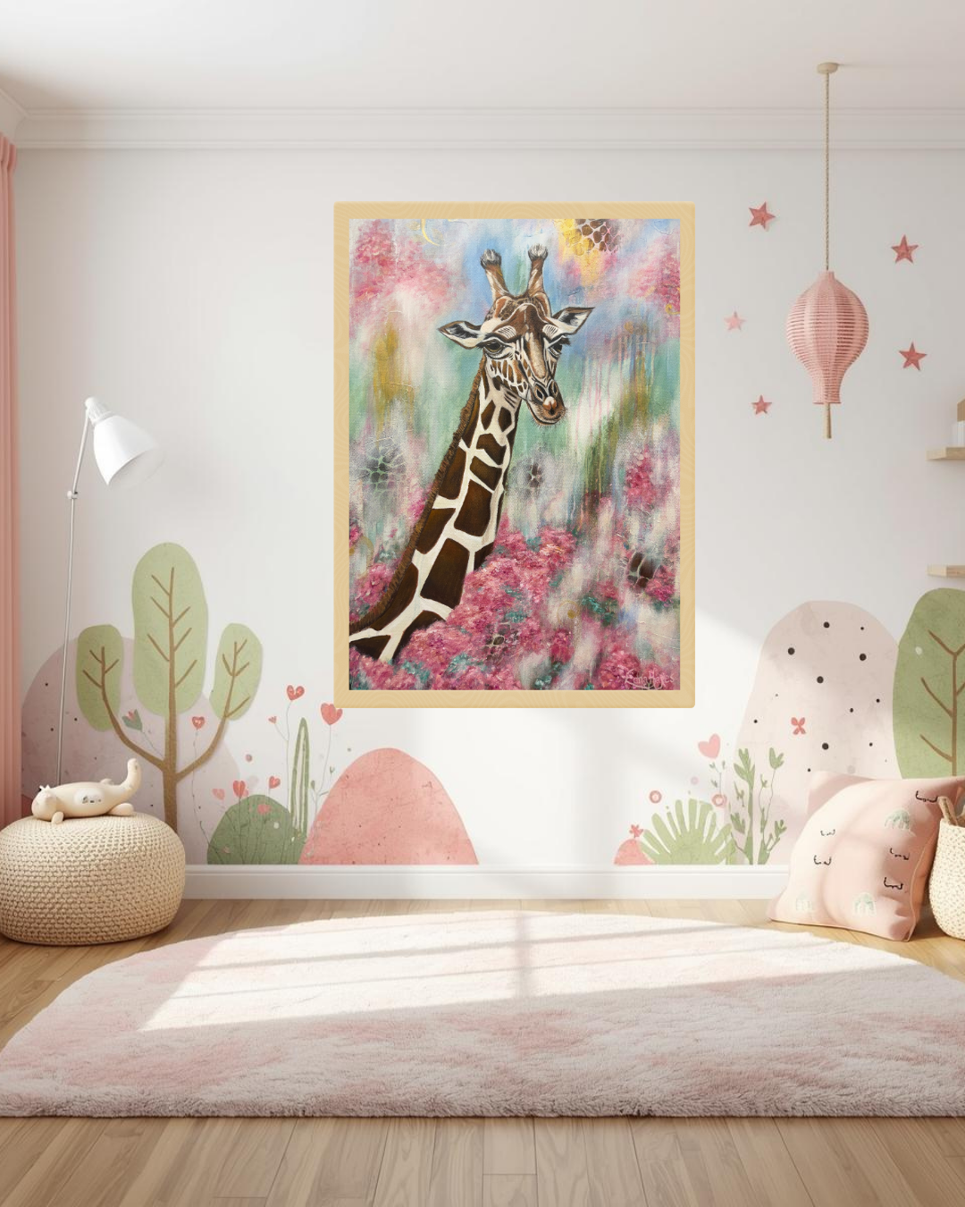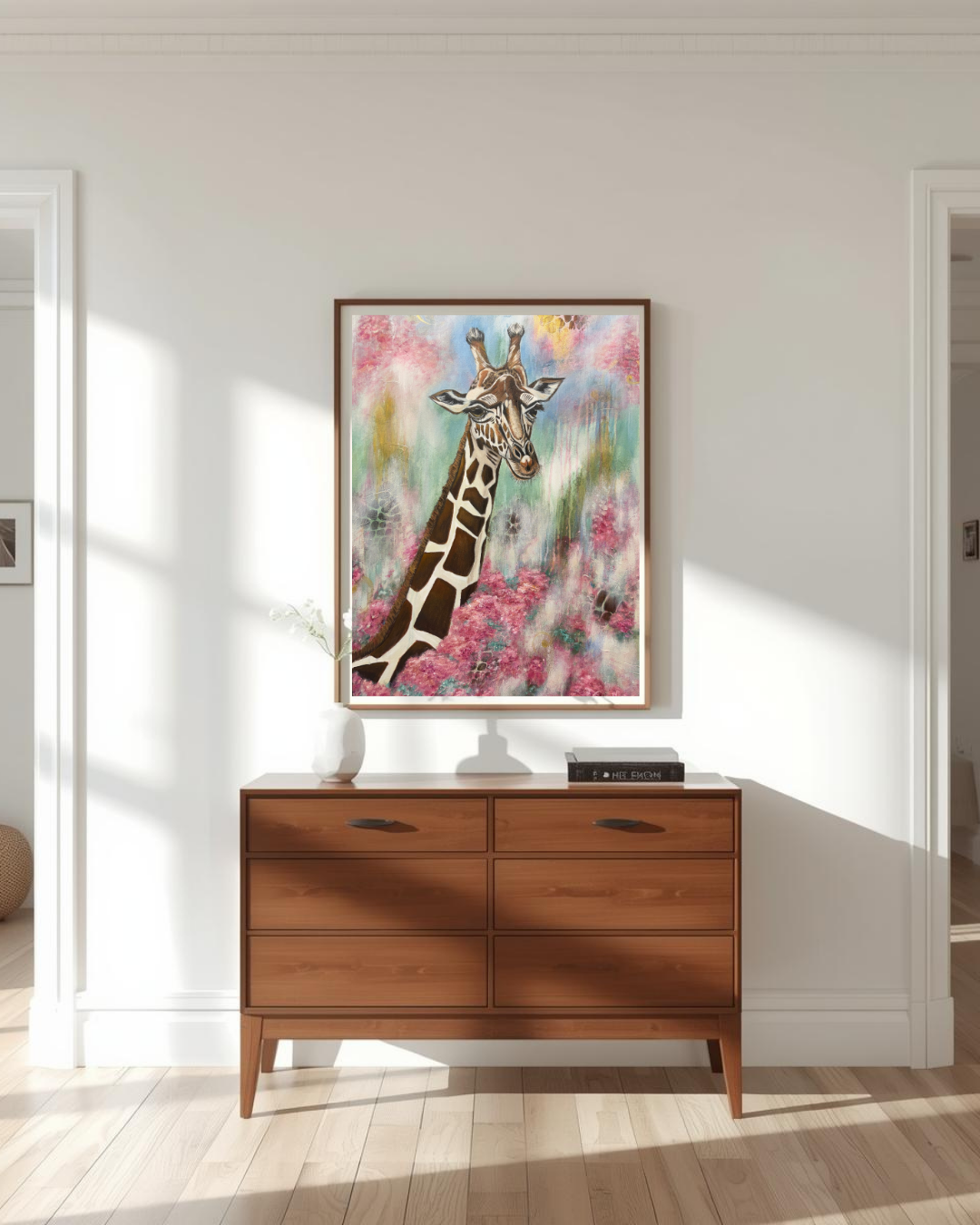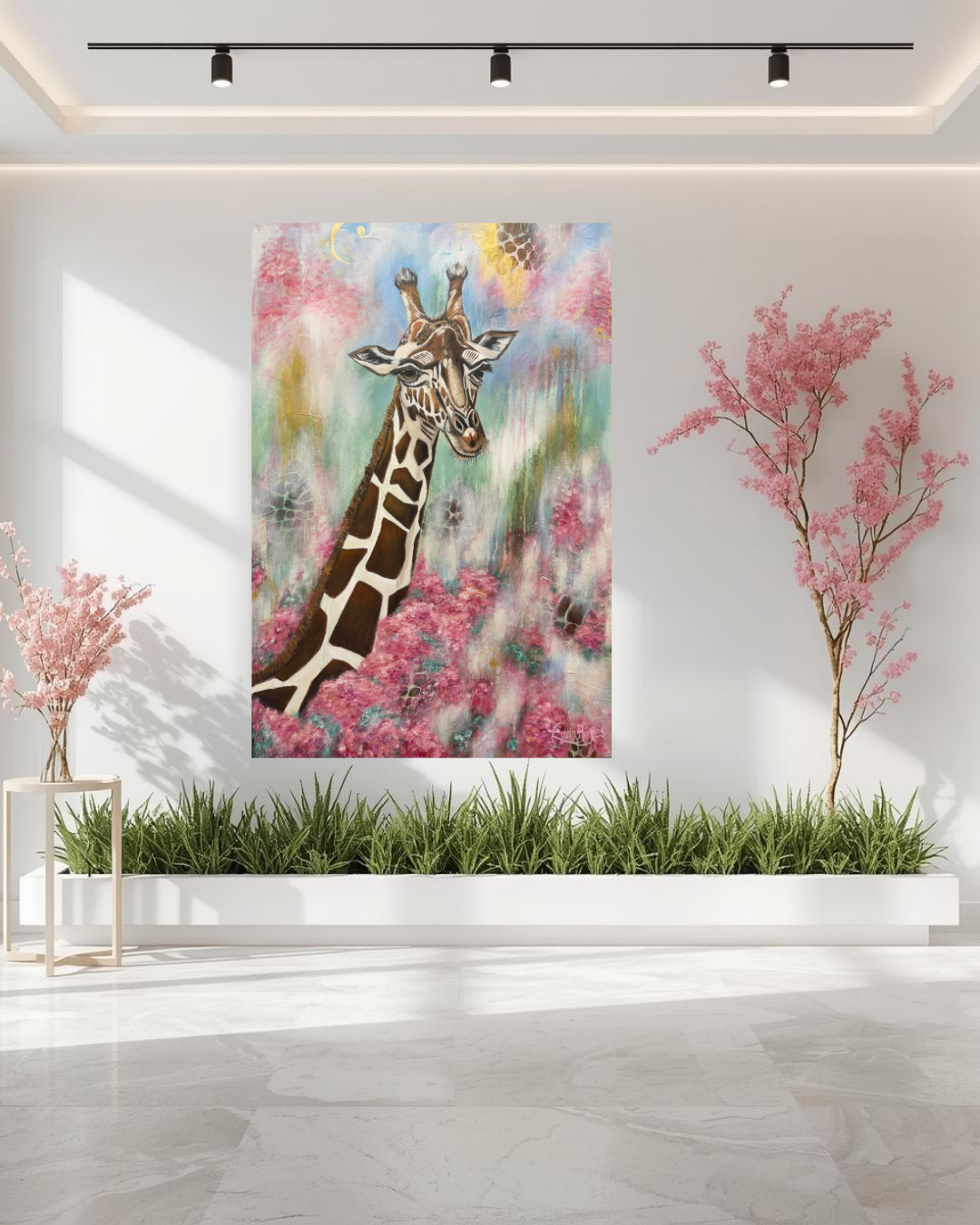 "Rise Up" captures the moment we are called to rise above the noise and distractions of this world to see from a divine perspective... to 'Look for the Gold' in every situation. The giraffe, known for its unique ability to see far across the horizon, symbolizes the foresight and wisdom that come from a close connection with our Creator. As it emerges from a bed of flourishing flowers, it reminds us that while we are planted in this world, we are called to live with our eyes fixed on higher things. This piece is an invitation to rise above your circumstances and embrace the expansive view of hope and purpose that God has for you.